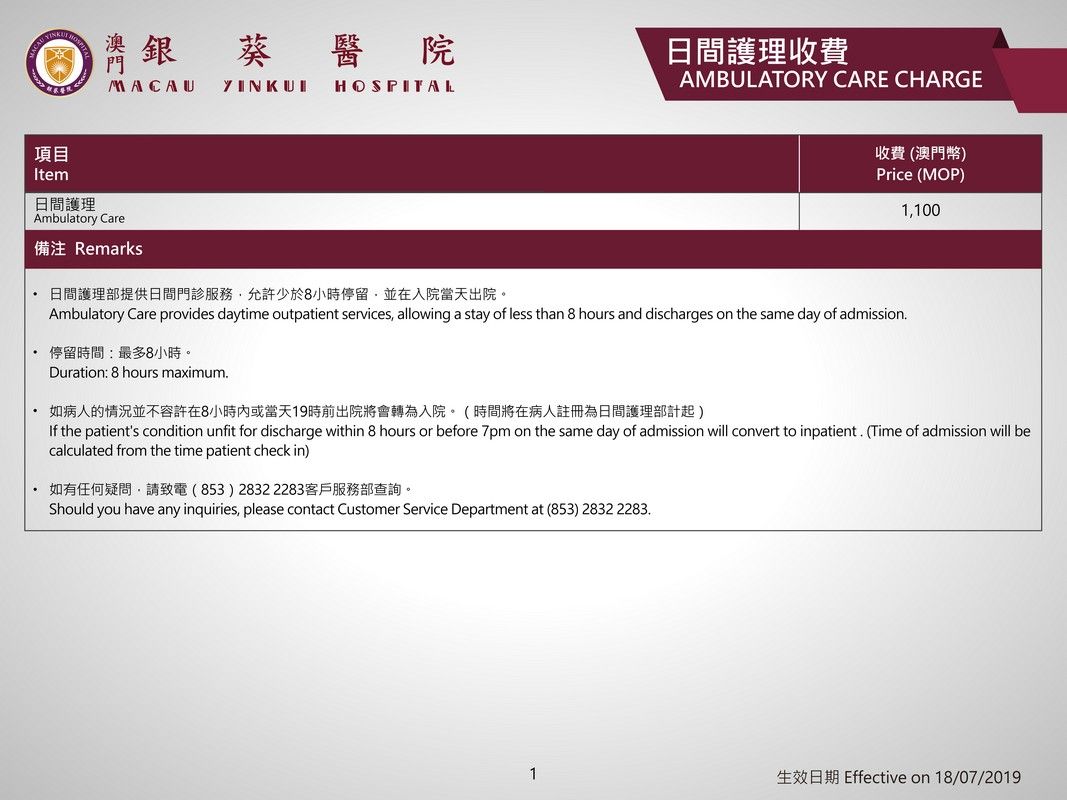 日间护理收费
