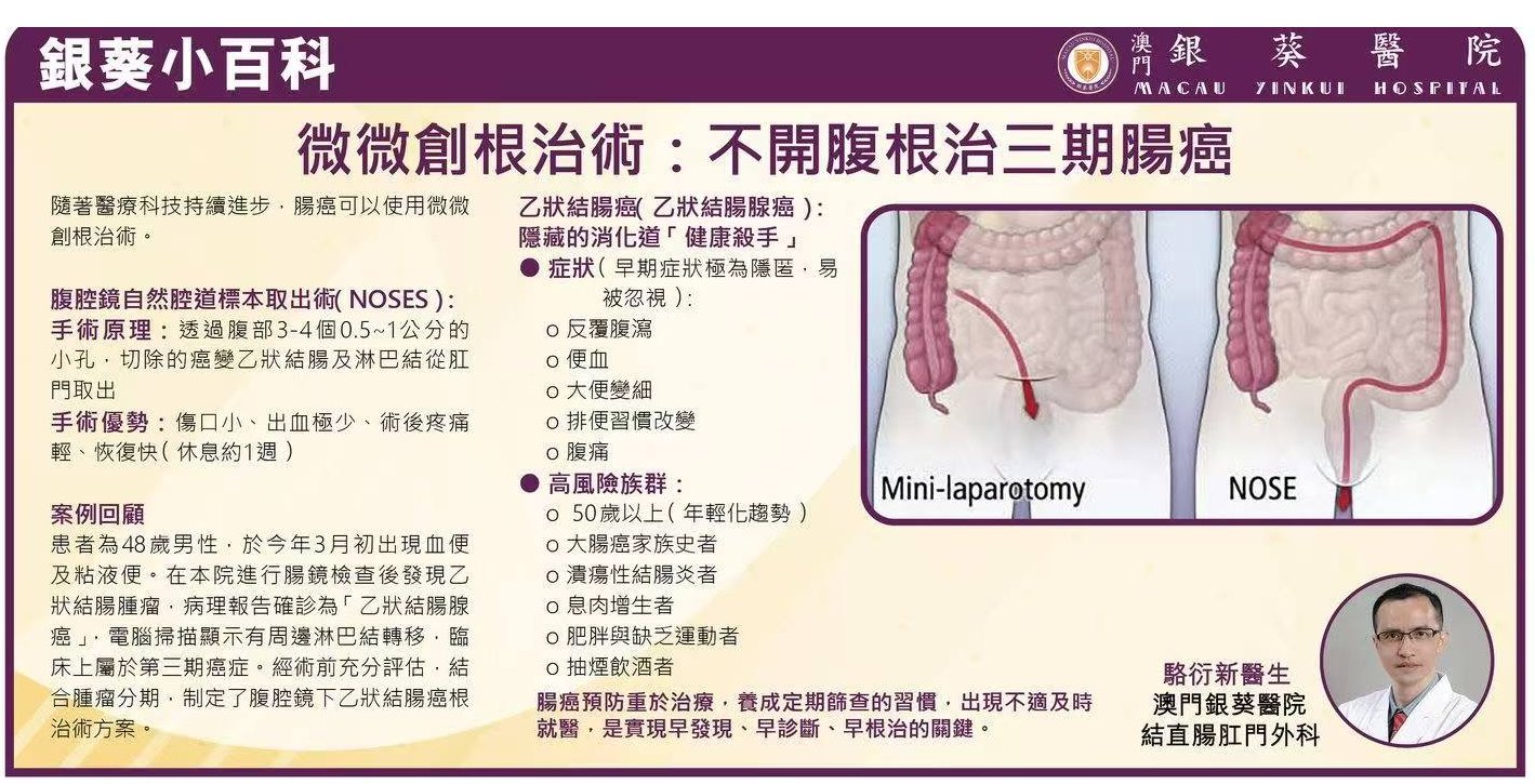 【微微創根治術:不開腹根治三期腸癌】